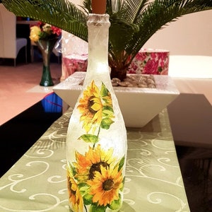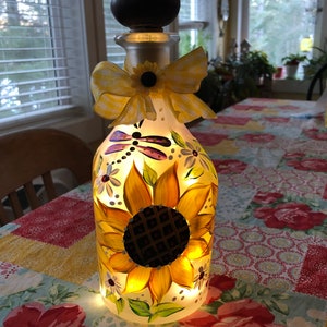 Hand Decorated Light Up Bottle Lamp with Sunflower Design One of a Kind Unique Birthday/Anniversary/Wedding/Housewarming/Christmas Gift