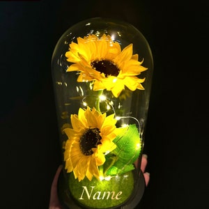 Personalized Sunflower in Glass Dome, Sunflower Lamp, Artificial Sunflower, Sunflower gift, Valentine’s Day gift, Birthday Gift, Anniversary
