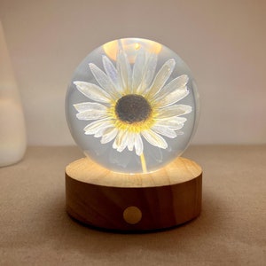 White Oxeye Daisy Resin Lamp, Dried Daisy Desk Lamp, Real Sunflower Night Light, Preserved Flower Resin Art, Eternal Flower Christmas Lamp