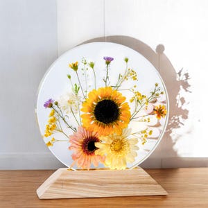 Pressed Sunflower Resin Lamp: Real Flower Night Light, Rustic Home Decor