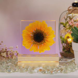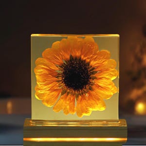 Real Sunflower Block, Resin Paperweight, Sunflower Night Light, Sunflower Ornament,Birthday Gift,Gift for Her, Home Decor,Christmas Gift