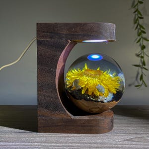Lamp Sunflower resin, epoxy resin lamp, night light wood, custom resin lamp, nightstand lamp, resin art decor, handmade gift, bedside lamp
