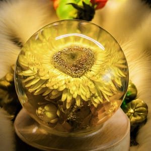 Elegant Sunflower Resin Globe Lamp – Real Flower LED Light with Glossy Moon Frame – Modern Floral Gift for Her