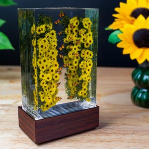 Handmade Sunflower Resin Lamp: Wood Base, Floral Night Light
