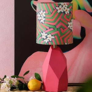 Handmade Pink Geometric Resin Table Lamp: Liberty Floral Shade