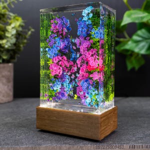 Handmade Pressed Flower Night Light: Resin Floral Lamp, Wooden Base, Real Flower Home Decor