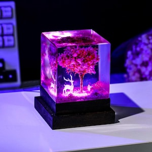 Cherry Blossom Tree Resin Night Light,Pink Sakura Epoxy Resin Lamp,Handmade Cube Personalized Night Light for Mom, Birthday Gifts for Her