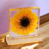 Sunflower Resin Lamp: Real Flower LED Night Light, Wood Base, Personalized